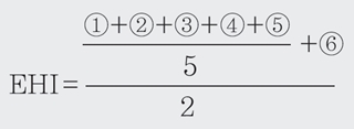 6개 하위 요소별로 100점 만점의 값을 도출한 뒤 위 식에 대입하면, ‘경제행복지수’ 안에서의 가중치가 1번부터 5번까지는 각각 10점씩 부여되며, 마지막 6번(전반적 행복감)은 50점이 부여된다. 결국 경제행복지수는 100점 만점이며, 중간값은 50점이다. 1번부터 5번까지의 구성 요소는 각각 2개의 세부 질문(모두 10개 질문)을 통해서 지수값을 도출하는데, 각 질문의 답변이 긍정일 경우 100점, 중립은 50점, 부정은 0점으로 하여 평균값을 뽑아낸다. 6번은 경제적 행복의 정도를 직접 물어서(‘나는 경제적으로 행복하다’), ‘그렇다’ 100점, ‘반반이다’ 50점, ‘아니다’ 0점으로 하여 지수값을 도출한다. ‘경제행복지수’를 도출하기 위한 설문은 모두 11개(1~5번 각각 2개, 6번 1개)로 구성된다.
