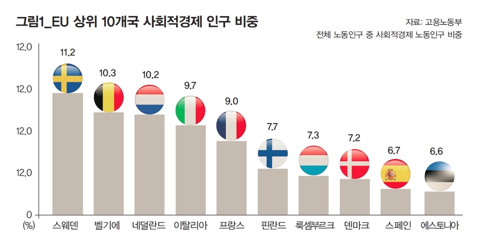2008년 세계 금융위기를 겪으며 유엔은 대표적인 사회적경제조직 협동조합을 경제위기에 강한 새로운 경제·사회 발전 대안모델로 보았다. 2014년 공공, 사회적 및 협동조합 경제에 관해 국제연구정보센터(CIRIEC)가 작성한 ‘EU 사회적경제 연구 보고서’에 따르면, 유럽연합(EU) 27개국의 사회적경제 주체들은 2009∼2010년 기준으로 전체 노동인구의 약 6.5%에 해당하는 1450만여 명을 유급으로 고용하고 있다. 2002∼2003년 당시 1100만 명(6%)에서 350만 명, 0.5%포인트 증가한 수치이다. 특히 스웨덴의 경우 전체 노동자 454만5800명 가운데 50만7200명(11.2%)이 사회적경제 분야에서 일하고 있다. 벨기에(10.3%), 네덜란드(10.2%), 이탈리아(9.7%), 프랑스(9.0%), 핀란드(7.7%), 룩셈부르크(7.3%) 순이다. 1인당 국민소득이 3만달러를 넘는 국가들이 대부분 사회적경제 분야의 고용 규모도 크다.(그림 1 참조)