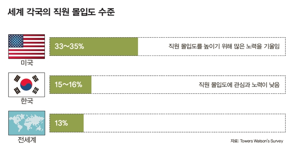 직원의 행복은 기업의 성장이나 위기 극복의 실질적인 힘이 된다. 기업 경영 현장에서 전체 조직원의 지속적인 헌신과 몰입을 이끌어내기 위한 경영자들의 고민은 실로 엄청나다. 사람이라는 자산(?)은 개개인의 생산성 차이가 현격하다는 특징을 갖고 있기 때문이다. 즉 개인의 생산성은 마음 가짐이나 태도·열정·집중도 등에 따라 발휘되는 정도가 천차만별이며 이에 따라 조직의 성패가 갈릴 수 있다. 토마스 제이 왓슨 전 IBM 회장은 “어떤 기업이 성공하느냐 실패하느냐의 실제 차이는 그 기업에 소속되어 있는 사람들의 재능과 열정을 얼마나 잘 끌어내느냐 하는 능력에 의해 좌우된다”고 했다.