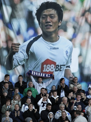 프리미어리그를 중심으로 한 유럽 클럽축구는 우리나라 시장에도 이미 깊숙이 스며들었다. 3월27일 맨체스터 유나이티드-볼턴 경기가 열리는 영국 리복 스타디움에 이청용의 사진이 걸려 있다. REUTERS/ PHIL NOBLE