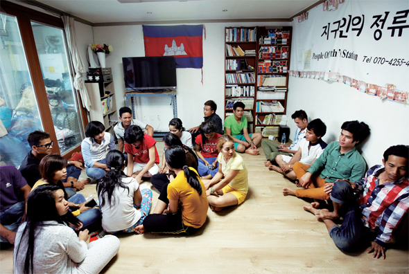 과도한 노동시간과 초저임금에 시달리던 캄보디아 농·축산업 이주노동자들이 경기도 안산 ‘지구인의정류장’에서 짧은 쉼을 얻고 있다. 한겨레21 정용일 기자 yongil@hani.co.kr
