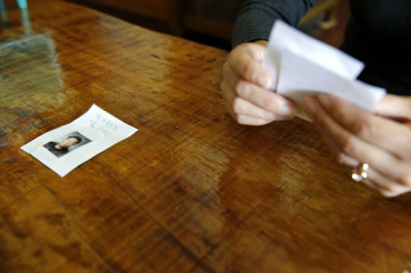 지난 10월8일 김 경감의 아내 김씨가 최근 딸아이가 만든 가족카드를 보고 있다.