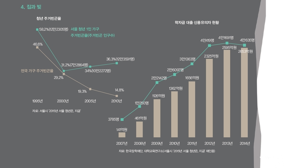 청년과 빈곤은 어쩐지 어울리지 않는 단어다. 노인 빈곤, 여성 빈곤, 아동 빈곤은 복지 정책의 주요 이슈였지만 청년은 배제된다. ‘일자리가 곧 복지’인 한국 사회에서 청년에게 인간다운 삶을 누릴 기본권은 오로지 ‘취업’을 통해서만 허락될 뿐이다. 청년과 관련한 통계들도 ‘고용’과 연관된 의미로만 집계된다. 청년들이 직면하고 있는 노동·주거·복지·빈곤과 관련한 양적·질적 통계는 거의 존재하지 않는다. 그때 청년은 국가가 책임지지 않아도 되는 ‘소외받지 않은 자’다.