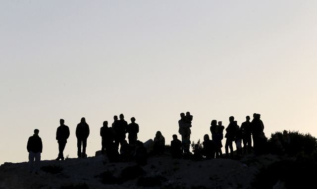 11월4일 터키 서부 체시메 해안 언덕에 올라 그리스 섬으로 출항하는 이들을 지켜보는 난민들. REUTERS