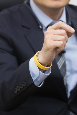 토론회에 들어갈 때와 달리 그는 양쪽 손목에 노란 팔찌를 차고 있었다. 팔찌가 없던 왼쪽 손목에는, 토론회에서 만난 세월호 희생자 영석이 엄마 권미화씨가 만들어온 노란 팔찌가 새로 채워져 있었다. 세월호 목걸이, 반지가 처음 나오면 제일 먼저 그를 찾아오던 영석이 엄마였다. 그는 “아마 아이(영석)에게 새 옷을 사주는 듯한 느낌을 받으시는 것 같다”고 했다. 가끔은 부담스러운 기대와 차가운 시선에도 그가 국회의원이 되려는 건 이런 마음들을 모른 체 할 수 없어서였다.
