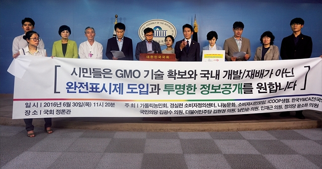 6월 말 현재, 갓 출발한 20대 국회에는 GMO 완전표시제법이 발의된 상태다. 농민 출신인 김현권 의원(더불어민주당)은 6월20일 야 3당 의원 29명의 동의를 받아 식품위생법 개정안을 대표발의했다. 윤소하 의원(정의당) 역시 또 다른 GMO 완전표시제법을 조만간 발의할 예정이다.