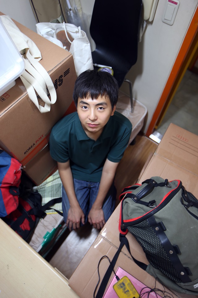 26살 고졸 청년 김대환씨가 1년간 생활했던 서울 마포구 고시원 자신의 방에서 이삿짐에 둘러싸여 있다. 김씨는 수능 시험을 준비하기 위해 9월5일 원룸으로 이사했다. 기본소득 월 135만원이 주어진다면, 그의 삶은 어떻게 달라질까?
