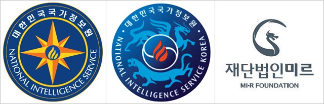 2016년 6월 국가정보원이 새 로고(가운데)를 만들면서 ‘좌청룡·우백호’를 넣었다. 누리꾼들은 ‘오방’을 지키는 동물신으로 ‘주술적 의미’를 담았다는 의혹을 내놓았다. 재단법인 미르의 로고(오른쪽)와도 닮았다. 국정원·재단법인 미르 홈페이지