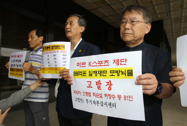 지난 9월29일 투기자본감시센터 회원들이 최순실과 안종범 청와대 정책조정수석, 재단법인 미르, 재단법인 K스포츠 대표 및 이사들을 검찰에 고발하기 위해 서울 서초동 서울중앙지검을 찾았다. 한겨레 박종식 기자