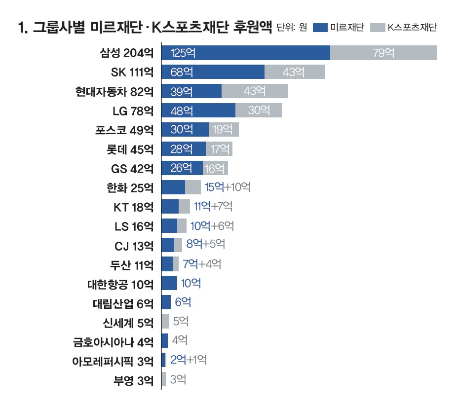 1. 그룹사별 미르재단·K스포츠재단 후원액