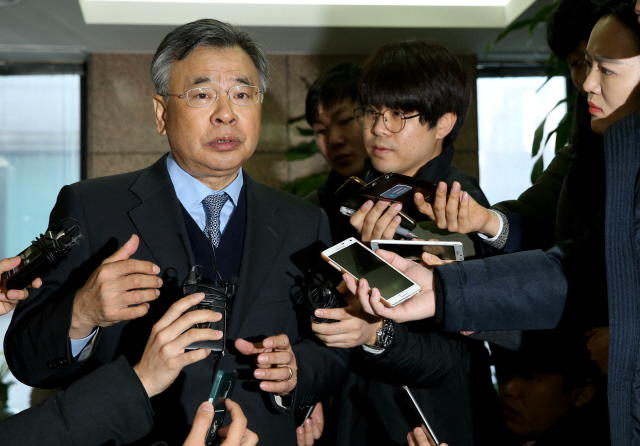 박영수 변호사가 특별검사로 임명된 12월1일 오전 서울 반포동 법무법인 ‘강남’ 사무실로 출근하면서 기자들의 질문에 답하고 있다. 한겨레 김정효 기자