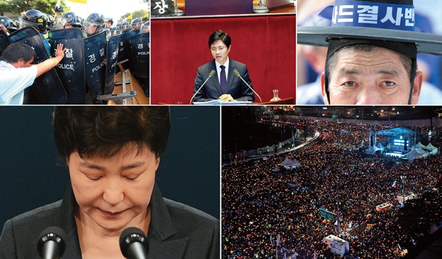 이어 7월 여름휴가 중 경남 울산의 전통시장에서 “고추로 만든 가루… 이건 굉장히 귀하네요”라고 고춧가루를 칭찬해 생활 감각 ‘제로’를 과시했다. 박근혜 정부의 ‘대통령 비유집’에는 ‘우문현답’이 나온다. “우리의 문제는 현장에 답이 있다”는 대통령의 말을 줄여 ‘우문현답’이라고 한단 것이다. 200만 촛불집회 현장의 답을 보지 못하고 “내가 이러려고 대통령을 했나”라는 자괴감에 시달리다 결국 사퇴할 기회마저 잃어버렸다.