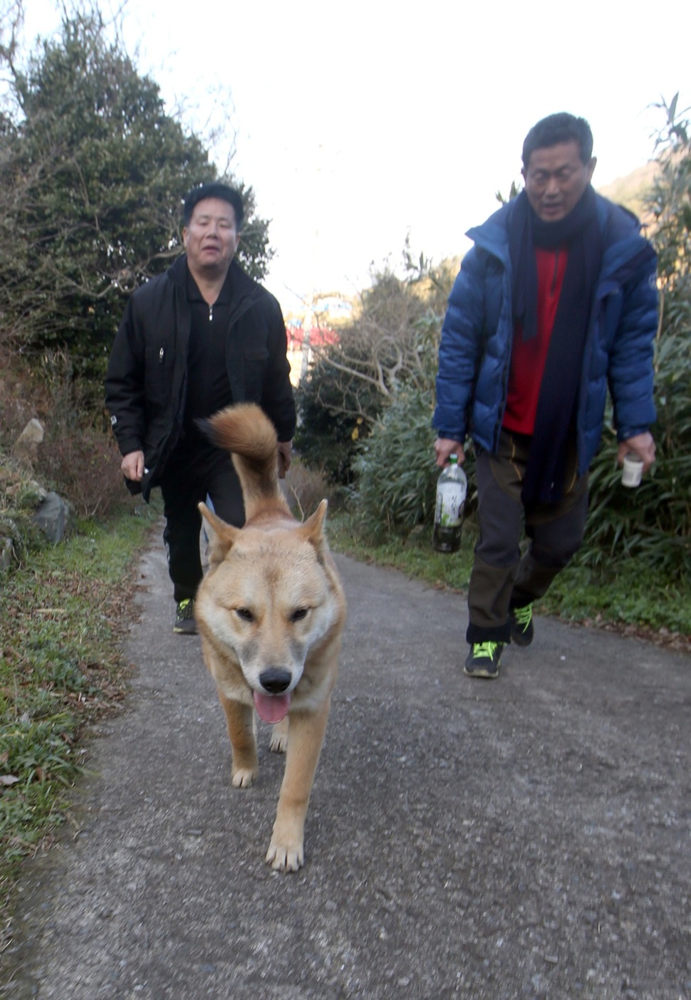 산마루 감시초소에 오르는 두 아빠를 앞서가는 진돌이.