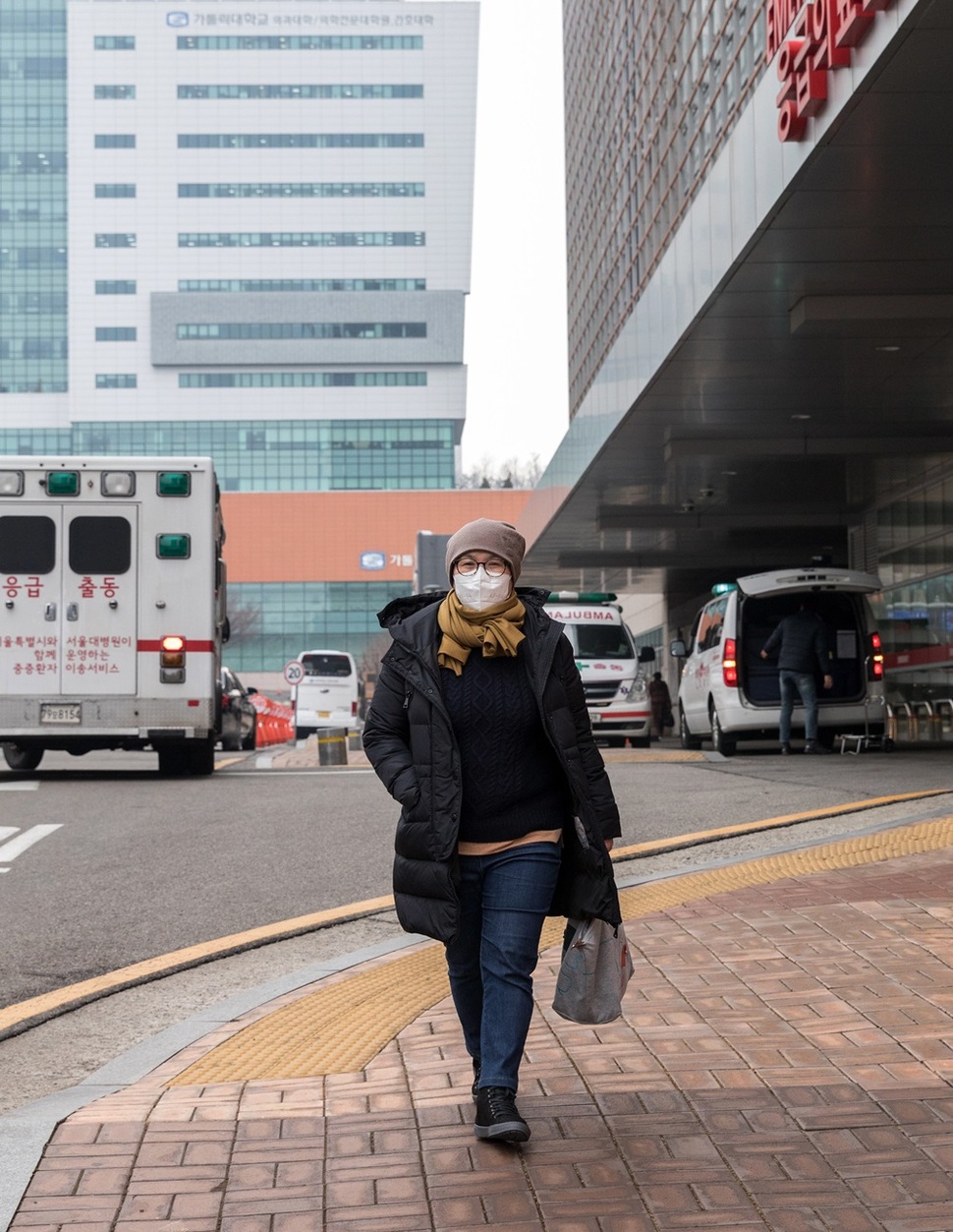 홍경화씨가 항암 치료를 받으려고 2월20일 서울성모병원으로 가고 있다. 박승화 기자
