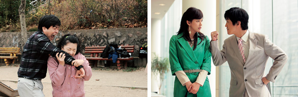 그래서 <조강지처 클럽>은 캐릭터의 소통 대신 관계를 통해 사건을 만들어낸다. 나화신과 구세주의 사랑이 애틋한 건 그들이 이혼녀와 미혼의 연하남이기 때문이고, 그들의 사랑이 더 힘들어지는 것은 그들 사이에 방해자가 등장하기 때문이다. 심지어 한복수와 길억(손현주)은 ‘불륜 커플의 남편과 아내’로 만나 시작부터 가슴 아픈 사랑을 하고, 결혼을 앞두고는 길억의 아내 정나미가 길억의 아이를 가져 어쩔 수 없는 이별을 선택하게 된다.