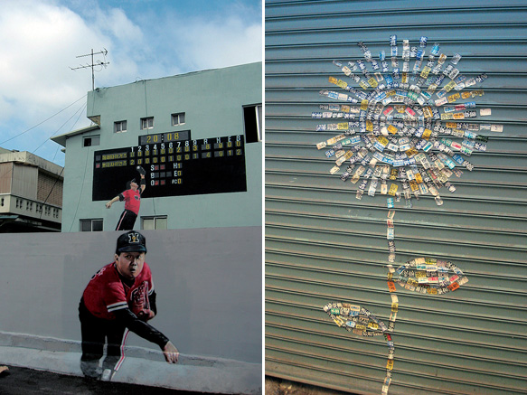 ‘일상 속으로 고고!’ 비엔날레는 딱딱하고 무겁다는 편견을 버려라. ‘2008 광주비엔날레’와 ‘2008 부산비엔날레’는 대중의 눈높이를 겨냥해 일상에서 즐길 수 있는 전시 프로그램을 다채롭게 펼쳐 보인다. 사진은 ‘복덕방 프로젝트’가 진행되고 있는 광주 대인시장의 주차장(왼쪽)과 빈 점포의 셔터(오른쪽). 한겨레21 노형석 기자