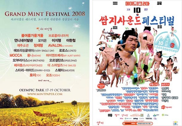 그랜드 민트 페스티벌과 쌈사페 포스터(왼쪽부터).