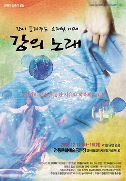 생명의 강을 살리자는 취지를 살리기 위해 공연장 주변에 전시회도 마련했다. 공연장 로비에서는 생명의 강을 따라 국토를 다녔던 순례단의 사진과 이야기를 담은 전시회도 열린다. 싸이월드에 클럽 ‘강의 노래’(club.cyworld.com/songofrivers)를 열고 ‘강의노래’로 사행시를 지어 관람권을 나눠주는 이벤트도 벌이고 있다. 문의 02-753-2183. 관람료 일반 2만원, 단체 1만원. 11일(목) 오후 7시30분, 12일(금)·15일(월)·16일(화) 오후 4시·7시30분, 14일(일) 오후 3시·6시 공연.