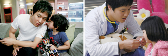 차태현의 코미디 연기가 다시 대중의 인기를 얻고 있다. 그는 아이들과 어울리는 코미디 연기자다. 영화 <과속스캔들>(왼쪽), 드라마 <종합병원2>에 나오는 차태현(문화방송제공).