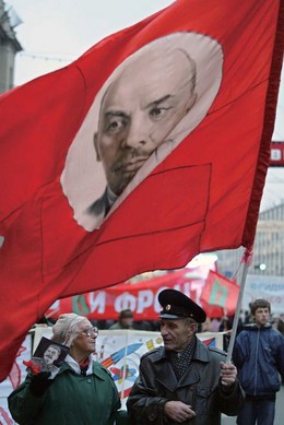 현실사회주의의 몰락과 함께 퇴장한 듯 보였던 레닌이 한국에서 되살아나고 있다. 볼셰비키 혁명집회에서 레닌의 초상화를 들고 있는 러시아 공산당 지지자들. AP PHOTO/ SERGEY PONOMAREV