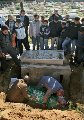 나치 대학살의 피해 당사자가 학살자로 나선 현상을 어떻게 이해해야 할까. 1월13일 가자 주민이 공습으로 사망한 사람을 묻고 있다. AP PHOTO/ ASHRAF AMRA