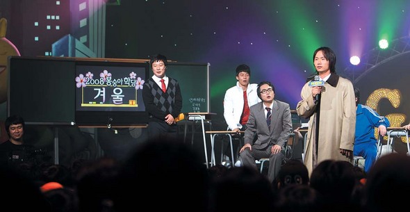 SBS <웃음을 찾는 사람들>(2003), 문화방송의 <개그야>(2006), 한국방송 2TV의 <개그콘서트>(1999). 현재 각 방송사를 대표하는 이 개그 프로그램들은 모두 스탠딩 공개 코미디의 형식을 취하고 있다. 이 새로운 형식의 효시는 역시 가장 긴 역사를 가진 <개그콘서트>. 이 코너의 성공은 결국 다른 방송사들의 코미디 포맷마저 바꾸어놓는다. 이 포맷은 과거 대학로의 무대에서 실험적으로 행해지던 스탠드업 코미디를 TV로 고스란히 옮겨온 것으로, 원래 개그맨 전유성의 제안에 따라 1회에 한해 파일럿 형식으로 방영됐다가 시청자의 반응이 좋아 정식 방송으로 편성됐다고 한다.