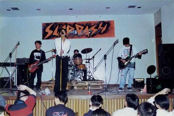 1996년 고등학교 1학년이던 필자가 활동하던 밴드 ‘슬랩대쉬’의 공연 모습. 맨 왼쪽에서 베이스 기타에 심취한 이가 필자.