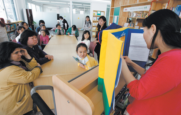다문화 어린이도서관 ‘모두’에서 몽골인 어머니가 아이들에게 몽골 동화를 들려 주고 있다. 사진 <한겨레21> 김정효 기자