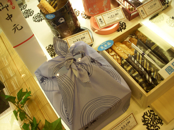 고베의 유명한 독일 양과자 전문점 ‘케니히스크로네’의 오추겐 선물세트. 양과자를 일본 전통의 후로시키(風呂敷·보자기)로 싼 점이 색다르다.