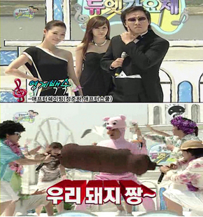 전통적으로 여름은 코믹 발랄한 댄스가수들의 대목 시즌이다. 잠깐만 떠올려도 클론의 <쿵따리 샤바라>, 쿨의 <해변의 연인>, DJ D.O.C.의 <여름 이야기> 등 주옥같은 노래들이 몰려온다. 상쾌한 리듬과 멜로디, 따라 하기 좋은 안무, 거기에 피식 웃음을 터뜨리게 하는 코믹 터치는 이 인기곡들의 필수 요소다. <무한도전>팀의 자학성 저질 이미지가 여기에 겹쳐지면서 누구든 마음을 열고 만날 수 있는 여름의 즐길거리가 생긴 것이다.