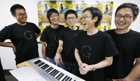 공연에 참여하는 ‘지_보이스’ 단원과 스태프. 왼쪽부터 이종헌, 박기호, 미르, 전재우, 천정남씨. 사진 <한겨레21> 김정효 기자