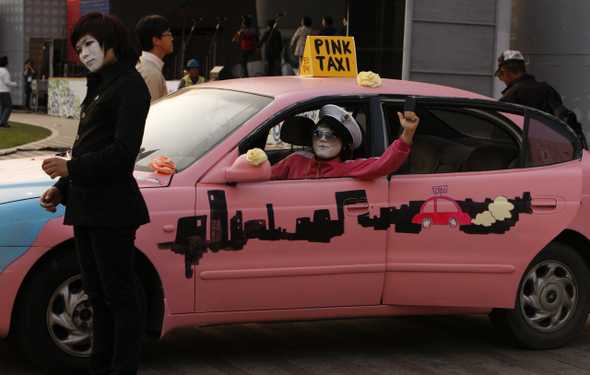 여성문화집단 ‘이프’가 여성 전용 콜택시의 도입을 요구하며 선보인 ‘핑크택시’