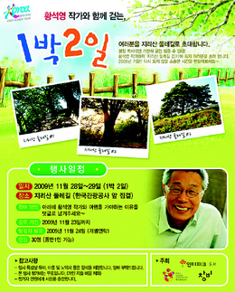 ‘둘레길 걷기’라는 환경친화적 녹색관광에 문학을 연계한 여행상품이 떴다. 인터파크도서는 황석영 작가가 온라인 연재 중인 <강남夢>의 누적 방문자 180만 명 돌파를 기념해 독자 초청 여행상품을 기획했다. 11월28일과 29일 이틀에 걸쳐 황석영 작가와 초대된 60명의 독자가 함께 지리산 둘레길을 걷는다. 1박2일간의 일정에는 작가와의 대화, 작품 낭독회, 사인회 등이 포함돼 있다. 참가 신청은 11월2일부터 23일까지 인터파크도서 홈페이지(book.interpark.com)에서 받는다. 황석영 작가와 여행을 가고 싶은 이유를 남긴 신청자 중 30명(1인 1명 동반)을 고를 예정이다. 참가비는 무료.