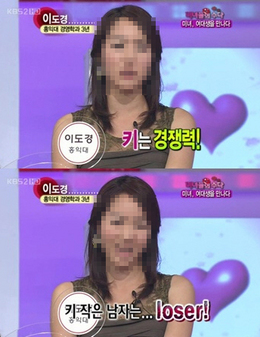 나는 사상의 자유를 존중한다. 진짜 ‘리얼 월드’에서 이와 같은 생각을 품은 여성, 혹은 남성들을 적지 않게 만나왔다. 그들 세계에서는 통념에 가까운 이야기일 수도 있다. 그러나 지상파 TV 쇼에서 그런 발언을 하려면 준비가 필요했다. 변호사를 선임해놓거나, 해외에 은신처를 준비해놓거나, 전신 성형과 신분 세탁을 위한 세팅을 해놓거나. 그녀의 발언을 듣고 내 입에서 나오는 말은 이 한마디였다. “이 바보야.”