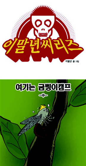 가끔은 제법 질감이 꽉 찬 풍자로 독자를 놀라게 한다. ‘굼벵이 캠프’ 편에서는 굼벵이가 7년 동안 땅속에 있다가 지상으로 나가 짝짓기를 하는 걸 군대 생활에 빗대고 있다. 기상나팔이 불면 굼벵이 된 지 2년 밖에 안 된 막내가 7년차 말년 병장에게 ‘번데기까지 17일 남았습니다’라고 알려준다. 그러더니 “굼벵이처럼 왜 이렇게 굼떠” “굼벵이도 구르는 재주가 있네”라며 속담을 묘하게 틀어 군 생활을 묘사한다. 솔직히 저런 개그 누구나 한 번쯤 날려보았을 듯싶은데, 이말년의 허술한 그림과 어울려 발작적인 웃음을 만들어낸다.