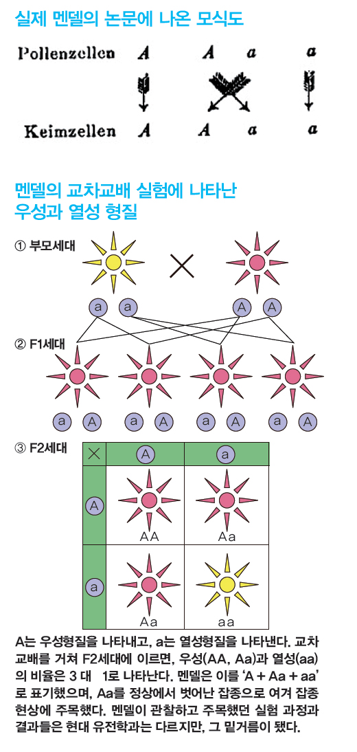 실제 멘델의 논문에 나온 모식도/멘델의 교차교배 실험에 나타난 우성과 열성 형질