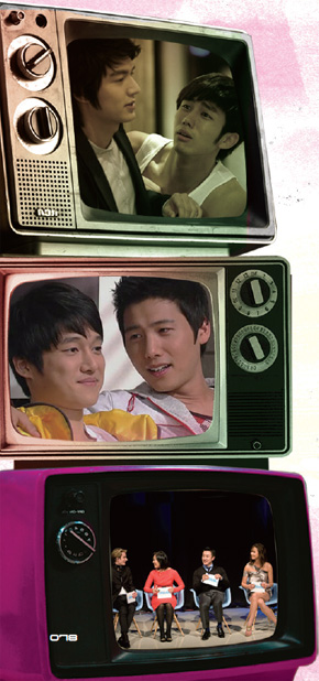 핑크색 케이블은 두 가지 연결선으로 이어져 있다. 하나가 바다 건너로 연결된 선이라면, 또 하나는 서울 강남으로 연결된 선이다. 차우진 대중문화평론가는 “어쨌든 케이블 방송은 강남 문화를 모델로 하는 경우가 많다”며 “이런 방송을 만드는 제작진과 출연진 가운데 외국 경험을 한 이가 많아서, 이들에게 익숙한 성소수자 코드가 아무래도 자주 나온다”고 지적했다. 물론 이들이 동성애를 다루는 방식은 문화적인 만큼 상업적이다. 또 우아하고 세련된 게이라는 고정된 이미지를 재생산하는 경우가 많다. 여기에 미드(미국 드라마)가 더해진다. 차우진 평론가는 “요즘 미드에 나오는 동성애자 캐릭터는 1980년대 미국 시트콤의 흑인 같다”고 요약했다. 약방의 감초처럼 빠지지 않는 조연이란 것이다. 이렇게 <지붕 뚫고 하이킥>의 현경이 연애를 글로 배웠다면, 한국의 시청자는 동성애를 방송으로 배운다.