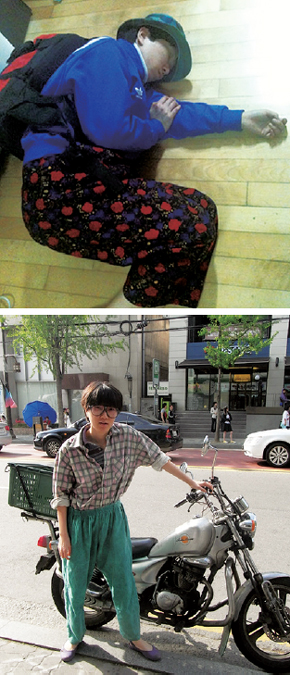 매일매일 다르게 코디해서 입어야 하니 옷값이 꽤 들 것 같지만, 한 벌에 1천∼2천원, 비싼 옷은 5천원 정도다. 이런 걸 어디서 구했을까 싶은 아이템이 많은데, 주로 서울 평화시장과 황학동시장을 이용한다. 가장 좋아하는 곳은 부산 남포동 구제시장이다. “가보면 알아요. 천국이에요. 스물아홉 벌 사면 2만9천원. 하지만 부산까지 왕복 차비 들죠, 또 많이 사면 무거우니까 택배로 부쳐요. 결코 싸기 때문이 아니라, 미를 추구하느라 가는 거예요.”