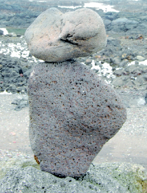 돌을 어떻게 쌓았는지 물으니 “이거 누구나 다 하는 거예요” 한다. 아무 돌이나 집어들어 바위 위에서 몇 번 위치를 잡더니 척 세운다. “중심만 찾으면 그냥 서요.” 하나만 서 있어도 아슬아슬해 보이는 돌 위에 돌멩이 하나를 또 올린다. 인위적으로 깨거나 붙이지 않아도 생긴 모양 그대로 중심 잡고 서 있는 돌들 뒤로 바다가 망망하다.