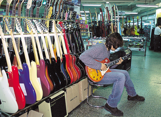 그 ‘시범경기’ 뒤에야 손님은 점원이 선심 쓰듯 넘겨주는 기타를 만져볼 수 있는데, 그 뒤에도 흡사 심사위원스러운 자세를 취한 점원의 부담 만점의 시선을 감수해야 한다. 이쯤 되면 어느 정도 악기를 다루는 사람도 긴장이 안 될 수 없다.