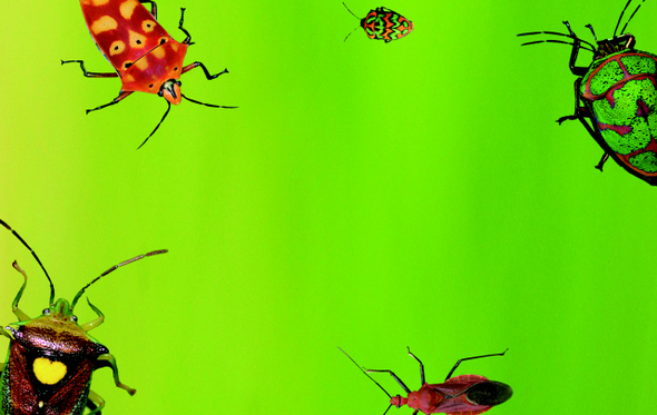 방패광대/ 정규택, 큰광대노린재/ 안수정, 광대노린재/ 안수정, 고추침노린재/ 김상수, 에사키뿔노린재/ 안수정.  (왼쪽 위부터 시계방향으로)