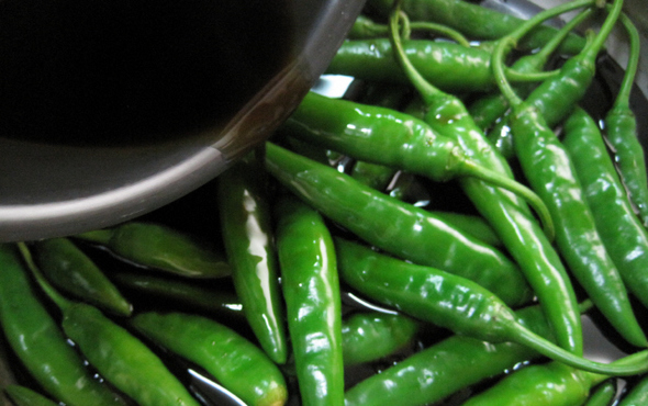 인터넷에서 조리법을 찾았다. ‘간장 2컵, 식초 1컵, 물 1컵, 설탕 1컵을 팔팔 5분 끓인다 → 약불에서 10분 끓인다 → 그릇에 고추를 넣고 뜨거운 간장을 붓는다.’