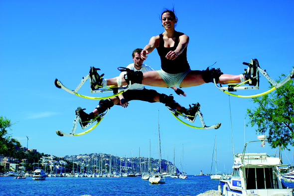 사실 점핑부츠는 하늘을 나는 부츠는 아니다. 그보다는 좀 놀라운 ‘스카이콩콩’에 가깝다고 할까. 정식 명칭은 ‘세븐리그’(Seven League). 원래는 재활치료 목적으로 독일에서 개발한 특허 제품이다. 오스트리아를 시작으로 프로 점퍼들과 재활 전문의들이 스포츠로 발전시켰다고 한다.