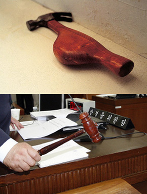 의사봉의 엉뚱한 기능은 국회 밖에선 상상할 수 없는 하드코어라는 점에서 도발적이지만 의사봉의 권위를 땅바닥으로 떨어뜨려, 무늬만 의사봉인 ‘텅 빈 기호’의 목재로 만든다는 점에서 지극히 관습적이다. 막이 오른 이번 정기국회에서 의사봉은 어떤 수난을 겪을까. 하와이 동포들이 이승만 전 대통령에게 보낸 첫 의사봉은 6·25 때 분실됐고 1960년대와 80년대에 한 번씩 의사봉의 머리 부분이 대책 없이 튕겨져나갔다. 의사봉 입장에서는 <임신한 망치>처럼 상상임신이라도 하면 편할까.