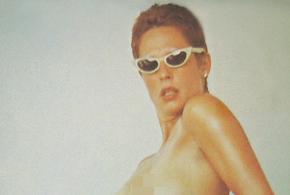 린다 벵글리스가 등장하는 <아트포럼> 광고(1974년)에서 가슴 아랫부분을 잘라냈다.