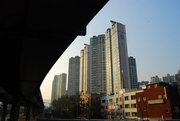집은 없어져도 그 밥풀때기들은 여기 살고 있을까. 통계는 아마 그렇지 않을 것이라고 말한다. 길음뉴타운의 재정착률은 17.1%. 애초 재정착률을 높이는 게 이 지역 재개발의 첫째 목적이었다고 하는데, 이렇게 재정착률이 낮은 이유는 길음역 주변의 아파트단지를 한번 휘둘러보면 대번에 알 수 있다. 최근 새로 찍은 아파트 광고에 나올 것같이 건물이 번듯하다. 한가롭게 인공 숲이 우거지고 한쪽으로 폭포도 보인다. 애당초 분양가가 너무 높았다.