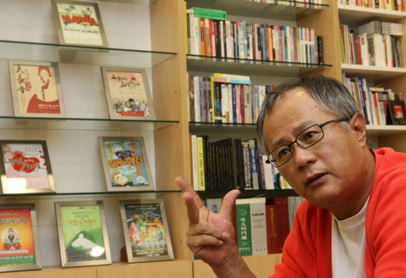 -<난타> 등을 통해 한국적 문화예술을 새롭게 바꿔왔다. =원형을 보존·계승하는 것도 중요하고 그 원형을 깨부순 뒤 현대적으로 새롭게 만드는 것도 중요하다. ‘부숴야 하나, 지켜야 하나’를 가르는 것은 너무 획일적인 시각이다. 다양성을 인정하는 게 문화 발전에 도움된다. <난타>나 <탈>처럼 원천 소스를 갖고 현대적 공연을 만들어야 어필한다. 한류는 절대 꺾이지 않았고 오히려 퍼져나가고 있다. 아시아에 머물지 않고 미국과 유럽 등 ‘문화강국’으로 뻗어나가도록 정부 지원이 필요하다. -‘판박이’ 아이돌 그룹이 넘친다는 비판이 있다. =너무 아이돌 그룹으로 몰린다는 우려가 있지만 다양성이 존재한다고 생각하면 된다. 아이돌 그룹은 그들대로, 재즈는 재즈대로, 70·80은 70·80대로 필요하다. 쏠림 현상이 크고 텔레비전에 많이 의존하지만 너무 걱정할 필요는 없다. 나는 잘 모르지만, 10대·20대에게 물어보면 팀마다 개성이 있다고 한다. 이해 못한다고 무시할 게 아니라 그 세대의 문화로 인정해야 한다. 아이돌 그룹도 레드오션이 돼, 누군가 새 상품을 내놓고 시장을 선도할 것이다. -국내 문화산업 시장은 넓어졌나. =국내 시장이 너무 작아 재투자가 안 되다 보니 인재들이 떠난다. 영화를 제외한 문화산업 시장을 현재의 3천억원대 규모에서 1조원대로 키워야 한다. 문화 콘텐츠도 돈을 주고 산다는 개념이 생겨야 한다. 아직도 초대권으로 공연을 보려는 사람과 영상물 불법 다운로드가 너무 많다. 적은 관객으로 수익을 내려니 입장료를 비싸게 받을 수밖에 없다. 관객이 1만 명이면 입장료가 3만원이면 되지만, 3천 명이면 10만원을 받아야 하는 악순환이다. 갈빗집 하는 친구에게 갈비를 공짜로 달라고 하지는 않으면서, 공연은 공짜 티켓을 원한다. 오락 기능으로서 텔레비전 의존도가 너무 높고, 지나친 서울 중심주의와 다양한 유흥문화도 문화시장을 키우는 데 방해가 된다. 먹고살 만해졌으니, 삶의 가치와 행복을 문화에서 찾을 때다. -문화예술인으로서 성공한 삶을 살고 있는 것 같다. =성공했다고 생각한 적도 없고 엄청난 부와 명예를 얻지도 않았지만 행복하게는 살고 있다. 돈과 명예가 아니라 재미있는 길을 선택했고, 실패하고 손해도 봤지만 하고 싶은 일을 해와서 힘들지 않았고 행복했다. 싫어하는 일이면 성공해도 행복하지 않을 것이다. 오전에 학교, 오후는 회사, 밤에는 공연장, 이렇게 하루를 셋으로 쪼개 산다. 각자가 자신의 드라마를 해피엔딩으로 만들기 바란다. 김순배 기자 marcos@hani.co.kr