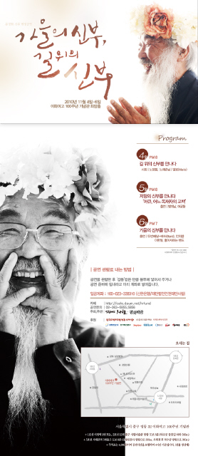 공연은 3일 동안 각각 다른 내용으로 꾸며진다. 4일 공연 ‘길 위의 신부를 만나다’에는 소설가 공선옥과 사진가 노순택 등이 출연해 이야기를 나누고, 재즈가수 말로가 문정현 신부가 좋아하는 가요를 편곡해 부른다. 5일 공연 ‘저항의 신부를 만나다’에는 명계남과 여균동이 출연하는 모노드라마 <아큐, 어느 독재자의 고백>이 문 신부와 거리에서 함께한 이들에게 헌정되는 시간이 마련된다. 마지막 날인 6일에는 ‘가을의 신부를 만나다’라는 제목으로 진행된다. 안치환과 이한철, ‘좋아서 하는 밴드’가 무대에 오른다. 문의 02-363-5855.