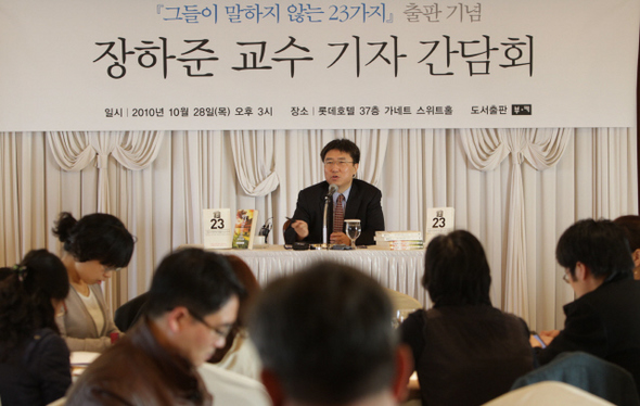 쉽다고 해서 내용이 얄팍하다는 뜻은 아니다. 이 책을 두고 영국 일간지 <가디언>은 저자 인터뷰와 함께 서평을 두 차례에 걸쳐 실었다. 그것도 부족했는지 신문의 한 고정란에서는 아예 에드 밀리밴드 영국 노동당수에게 “장 교수를 점심 식사에 초대하라”고 권유했다. 그렇다면 스스로를 가리켜 “좌에 속하지도 우에 속하지도 않는다”고 말하는 장 교수가 우리나라에서 이명박 대통령을 만나볼 확률은? 안타깝게도 높지 않다. 그의 책 <나쁜 사마리아인들>이 국방부의 불온서적 목록에 올라 있기 때문이다. 지난 10월28일 헌법재판소는 국방부의 불온서적 지정이 합헌이라는 결정을 내렸다.