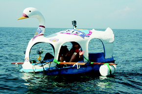 오리배를 타면서 보는 한강은 새롭다. 한강의 물방울을 만지고 낭만적인 데이트도 한다. 어른을 아이처럼 만드는 오리배는 어른용 사탕 같다. 오리배는 수질을 감시하는 ‘로봇 물고기’가 등장하는 시대에도 계속 순항할 수 있을까? 오리배에 태평양처럼 큰 바다를 건너려는 야망은 없겠지만, 박민규의 소설 <아, 하세요 펠리컨>에서 ‘오리배 시민연합’의 사람들은 오리배를 타고 망망대해도 건넌다.